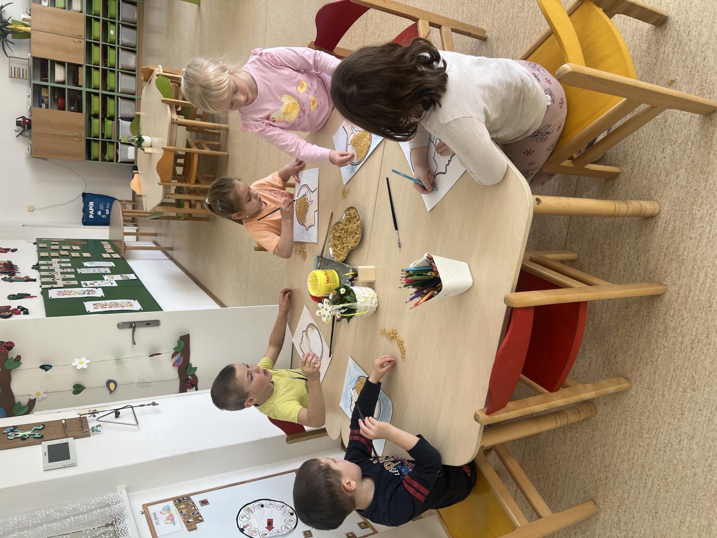 Naše jarní témata pokračují nejen v praktických činnostech, ale i ve výtvarné a vzdělávací oblasti. Povídáme si o proměnách přírody, učíme se o jarních květinách a mláďátkách a tvoříme jarní dekorace, které zdobí naši školku. Tímto se pomalu připravujeme na další měsíc plný nových zážitků a objevů.
